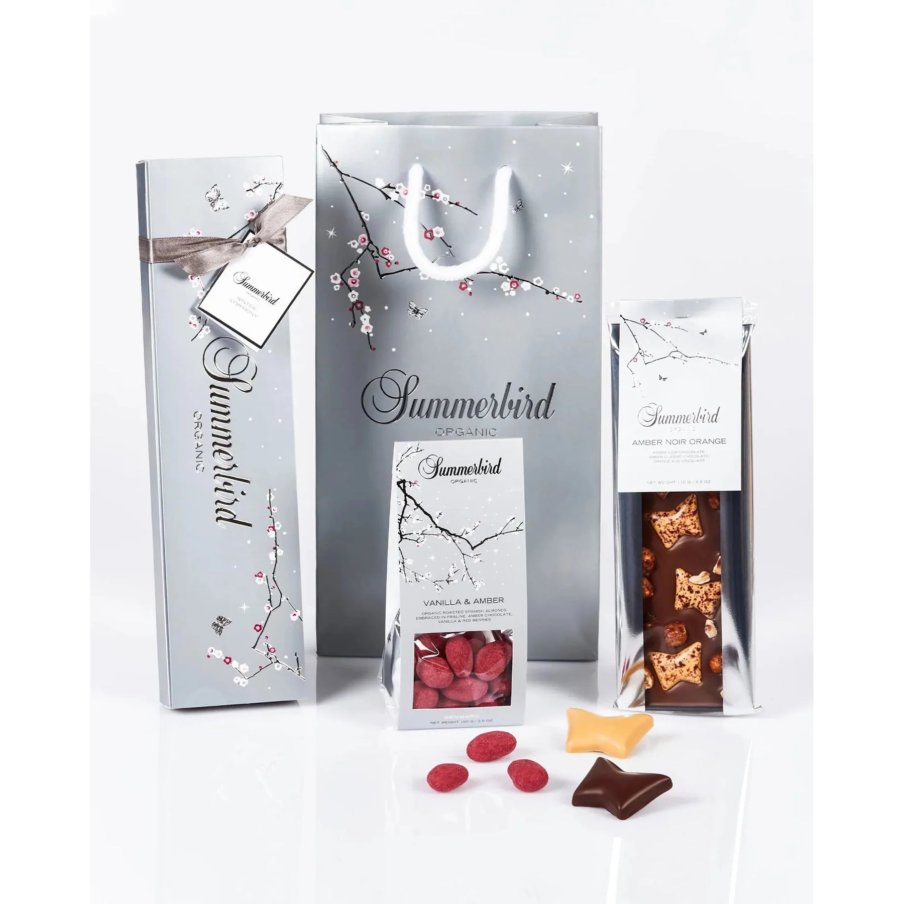 Tre af Summerbirds populære julevarianter, pakket i en smuk og eksklusiv julegavepose med sølvtryk. Gaveposen egner sig både som advents- og værtsgave. Gaveposen indeholder: Winter Edition, Amber Orange Croquant og Winter Hearts-gaveæske.