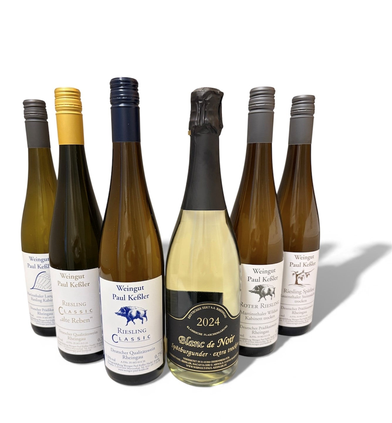 Lige syd for Wiesbaden løber Rhinen og i idylliske omgivelser i den lille landsby, Martinsthal, producerer Weingut Paul Keßler fremragende riesling. Denne smagekasse giver mulighed for at komme igennem næsten alle varianter, lige fra den søde Langenberg Kabinett til den tørre Spätlese og - som noget nyt og helt igennem fantastisk - en Blanc de Noir Sekt lavet på 100% Spätburgunder.